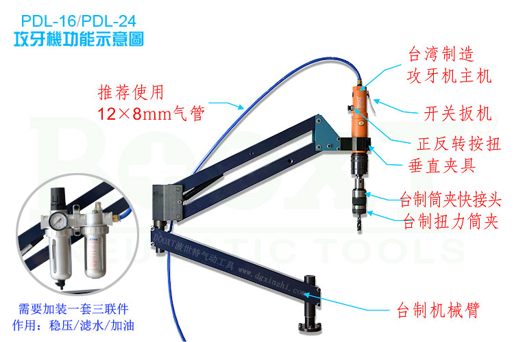 BOOXT PDL-16氣動攻絲機(垂直型臺灣配置整套清單)
