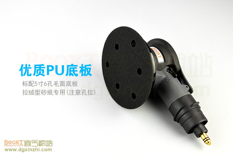• 產品參數: 底盤尺寸:5寸(125mm);轉速:11000rpm;偏擺:5mm;重量:0.84kg;使用氣壓:0.65Mpa;推薦氣管:內徑8mm;耗氣量:0.53立方米/分鐘;需搭配集塵桶使用,機器使用時多加氣動油保養(yǎng)。