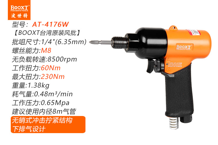 東莞市強勁五金工具有限公司提供臺灣BOOXT波世特品牌氣動工具,無銷式風批AT-4176W廠家直銷,首件享特價。咨詢熱線:4008301980