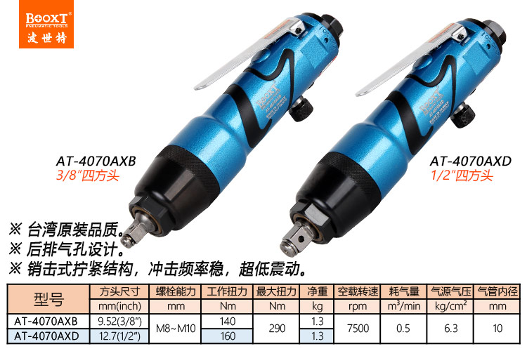 東莞市強(qiáng)勁五金工具有限公司提供臺灣BOOXT波世特品牌氣動工具,銷擊式氣動扳手AT-4070AXB廠家直銷,首件享特價。咨詢熱線:4008301980