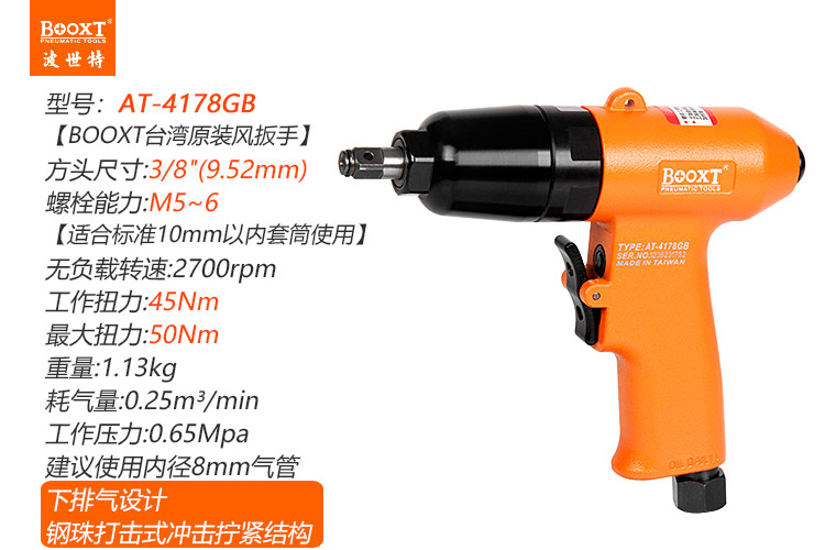 東莞市強勁五金工具有限公司提供臺灣BOOXT波世特品牌氣動工具,鋼珠打擊式氣動扳手AT-4178GB廠家直銷,首件享特價。咨詢熱線:4008301980