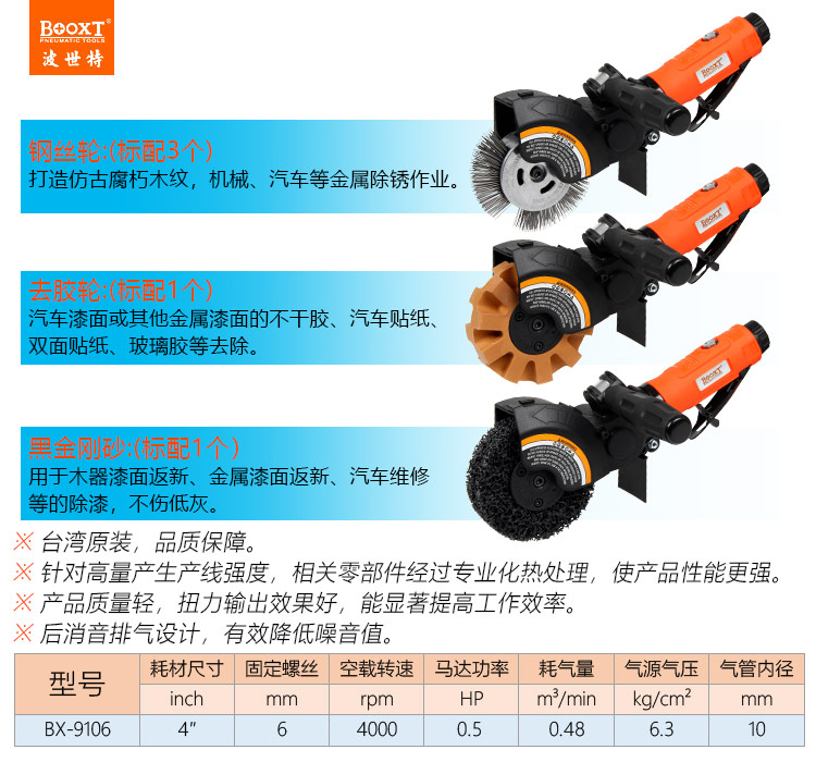提供臺(tái)灣BOOXT波世特品牌氣動(dòng)工具,汽車除銹去膠套裝機(jī)BX-9106廠家直銷,首件享特價(jià)。咨詢熱線:4008301980