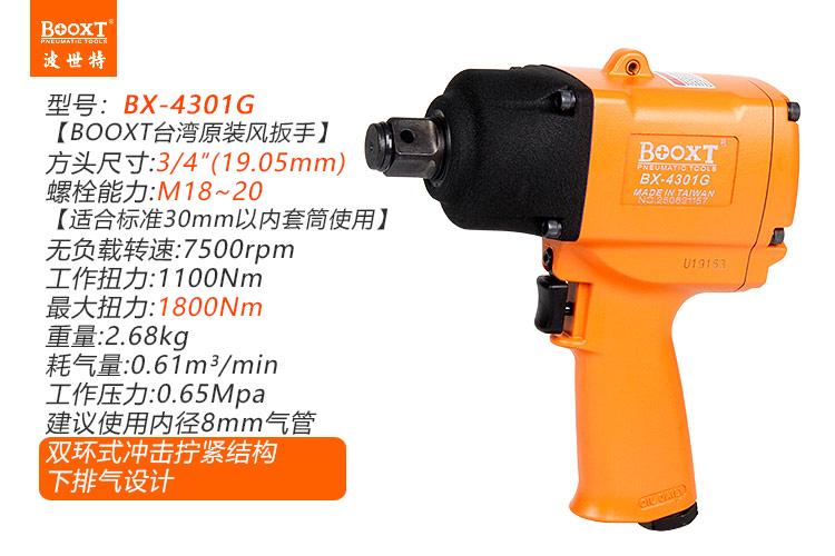 東莞市強(qiáng)勁五金工具有限公司提供臺(tái)灣BOOXT波世特品牌氣動(dòng)工具,氣動(dòng)沖擊扳手BX-4301G廠家直銷,首件享特價(jià)。咨詢熱線:4008301980