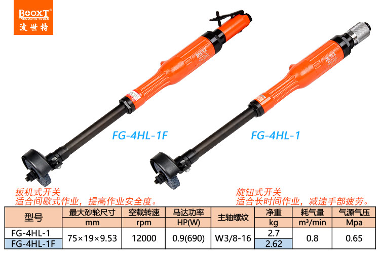 東莞市強(qiáng)勁五金工具有限公司提供臺灣BOOXT波世特品牌氣動工具,氣動加長砂輪機(jī)FG-4HL-1F廠家直銷,首件享特價。咨詢熱線:4008301980