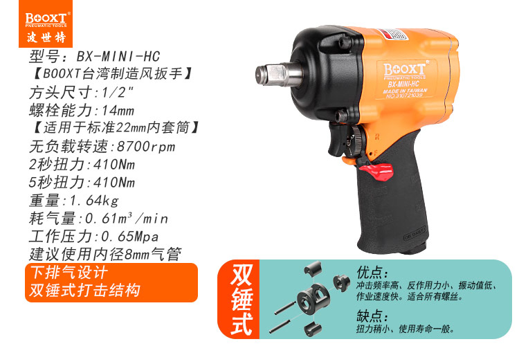 東莞市強(qiáng)勁五金工具有限公司提供臺(tái)灣BOOXT波世特品牌氣動(dòng)工具,輕型氣動(dòng)扳手BX-MINI-HC廠家直銷(xiāo),首件享特價(jià)。咨詢(xún)熱線:4008301980