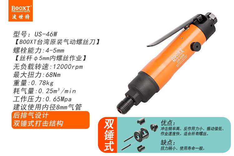 東莞市強(qiáng)勁五金工具有限公司提供臺灣BOOXT波世特品牌氣動工具,氣動螺絲刀US-46W廠家直銷,首件享特價。咨詢熱線:4008301980