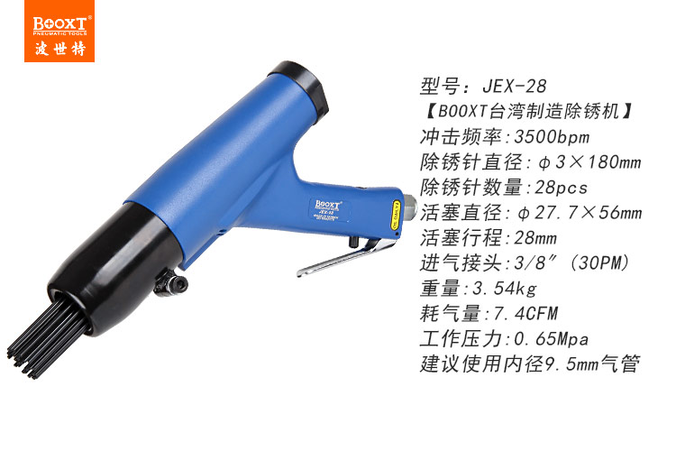 東莞強勁五金工具提供臺灣BOOXT波世特品牌,重型針式氣動除銹機JEX-28廠家直銷,首件享特價。咨詢熱線:4008301980