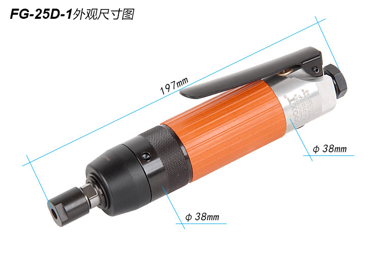 • 產(chǎn)品參數(shù): 夾頭能力:M3,6 (標(biāo)配M6) 馬達(dá)功率:0.32HP 空載轉(zhuǎn)速:24000rpm 工具能力:砂輪磨頭M25,旋轉(zhuǎn)銼刀M13 耗 氣 量:0.4m3/min 全 長:197mm 重 量 : 0.7kg 【扳機(jī)開關(guān)/超高同心度】