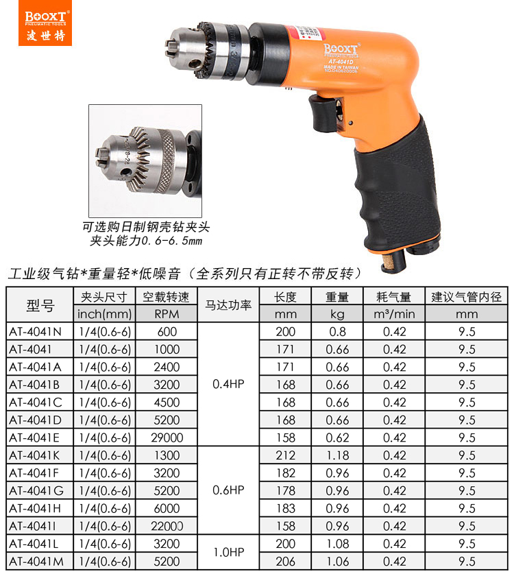 東莞市強(qiáng)勁五金工具有限公司提供臺(tái)灣BOOXT波世特品牌氣動(dòng)工具,3200轉(zhuǎn)航鈦氣鉆AT-4041B廠家直銷,首件享特價(jià)。咨詢熱線:4008301980