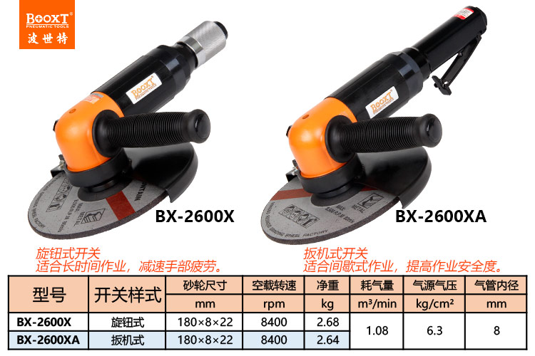 東莞市強(qiáng)勁五金工具有限公司提供臺灣BOOXT波世特品牌氣動工具,180氣動角磨機(jī)BX-2600X廠家直銷,首件享特價(jià)。咨詢熱線:4008301980