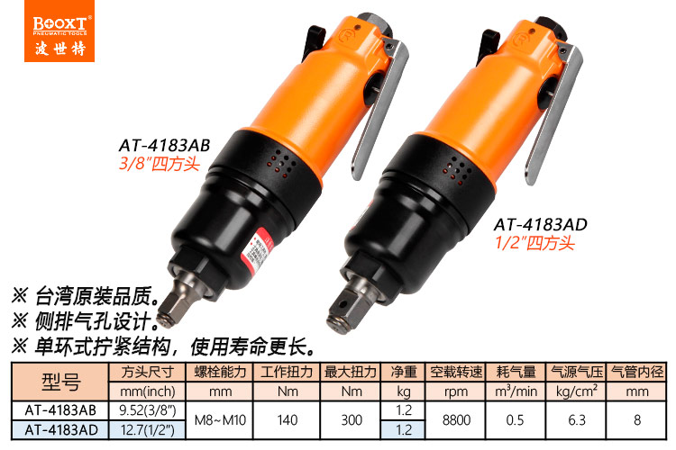 東莞市強(qiáng)勁五金工具有限公司提供臺(tái)灣BOOXT波世特品牌氣動(dòng)工具,氣動(dòng)沖擊扳手AT-4183AB廠家直銷,首件享特價(jià)。咨詢熱線:4008301980