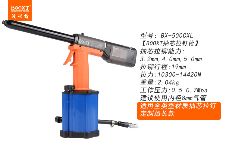 東莞市強(qiáng)勁五金工具有限公司提供臺(tái)灣BOOXT波世特品牌氣動(dòng)工具,加長(zhǎng)嘴氣動(dòng)拉釘槍BX-500CXL廠家直銷,首件享特價(jià)。咨詢熱線:4008301980