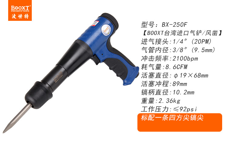 東莞市強勁五金工具提供臺灣BOOXT波世特品牌,減震型沖擊氣鏟BX-250F廠家直銷,首件享特價。咨詢熱線:4008301980