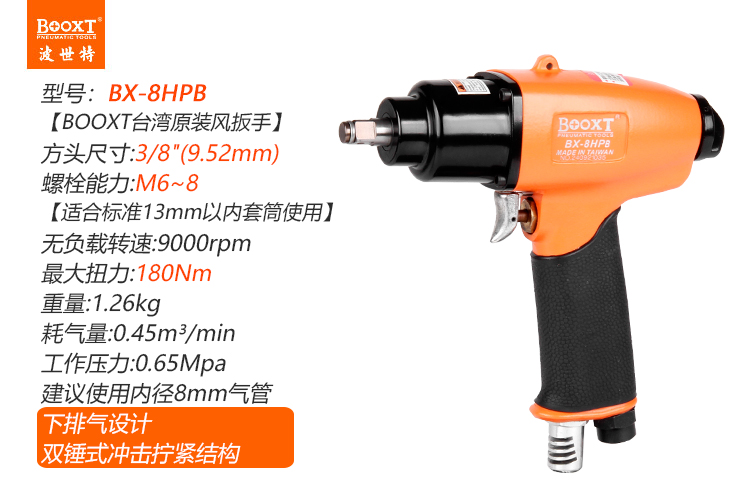 東莞市強勁五金工具有限公司提供臺灣BOOXT波世特品牌氣動工具,小型氣動扳手BX-8HPB廠家直銷,首件享特價。咨詢熱線:4008301980