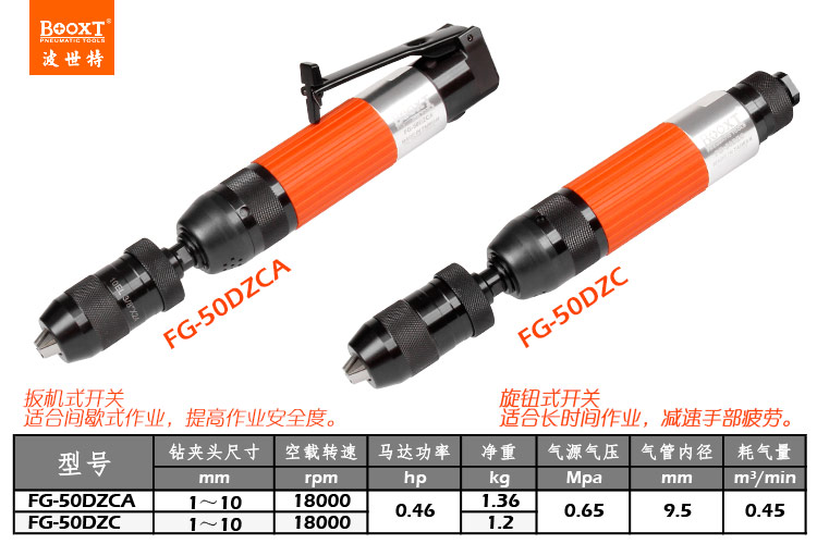 東莞市強(qiáng)勁五金工具有限公司提供臺灣BOOXT波世特品牌氣動工具,自鎖風(fēng)動鉆FG-50DZCA廠家直銷,首件享特價(jià)。咨詢熱線:4008301980