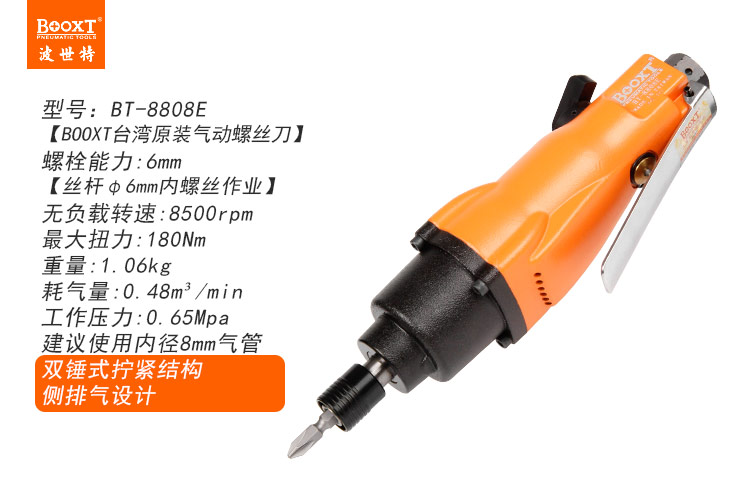 東莞市強勁五金工具有限公司提供臺灣BOOXT波世特品牌氣動工具,氣動螺絲刀BT-8808E廠家直銷,首件享特價。咨詢熱線:4008301980