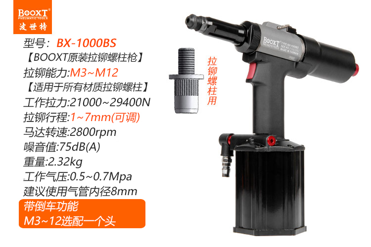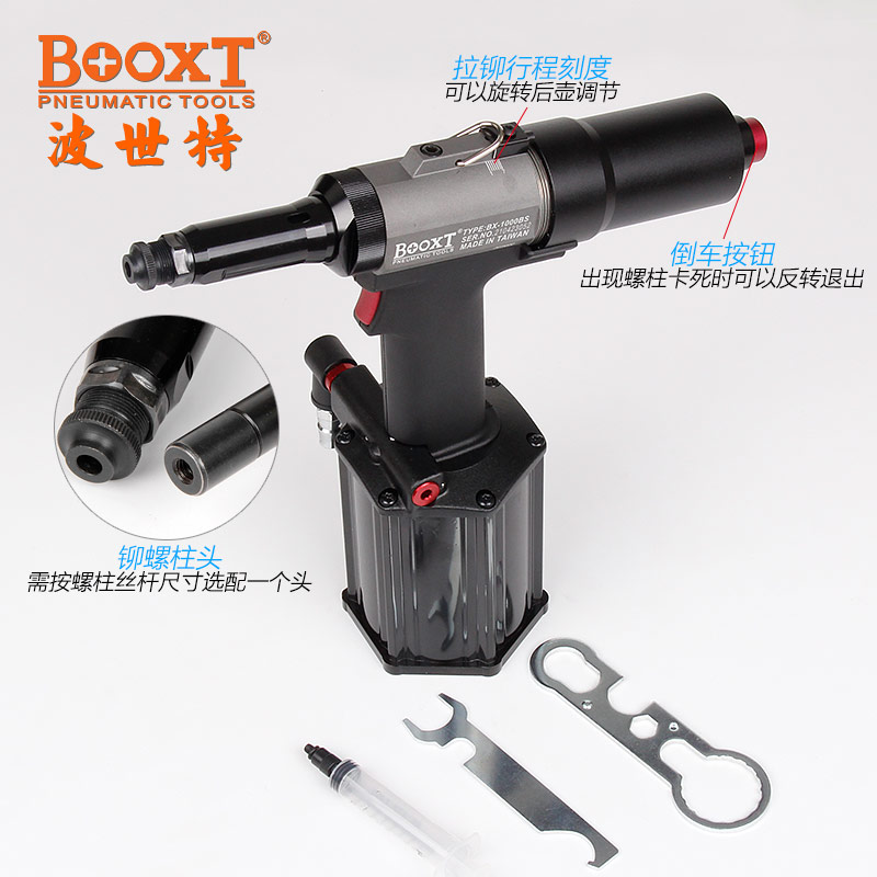 東莞市強勁五金工具有限公司提供BOOXT波世特品牌氣動工具,氣動鉚螺柱槍BX-1000BS廠家直銷,首件享特價。咨詢熱線:4008301980
