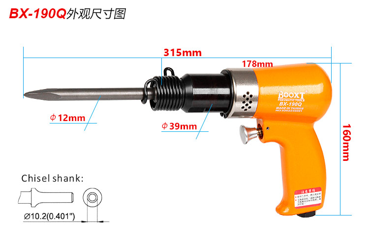 東莞市強(qiáng)勁五金工具提供臺灣BOOXT波世特品牌,氣動沖擊鏟BX-190Q廠家直銷,首件享特價。咨詢熱線:4008301980