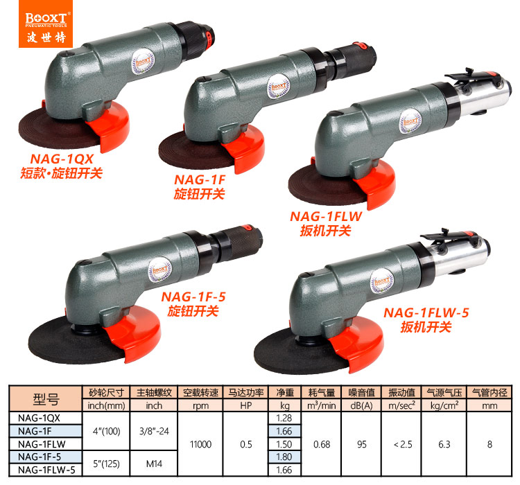 東莞市強勁五金工具有限公司提供臺灣BOOXT波世特品牌氣動工具,5寸氣動角磨機NAG-1F-5廠家直銷,首件享特價。咨詢熱線:4008301980