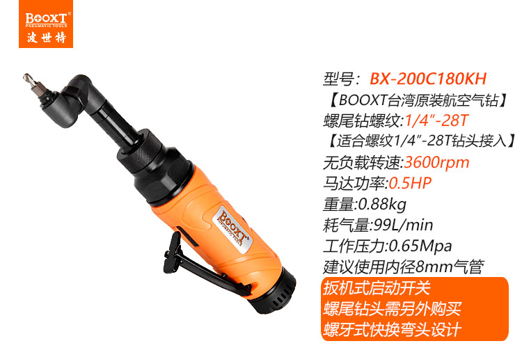 東莞市強(qiáng)勁五金工具有限公司提供臺灣BOOXT波世特品牌氣動(dòng)工具,帶螺牙偏角氣鉆BX-200C180KH廠家直銷,首件享特價(jià)。咨詢熱線:4008301980