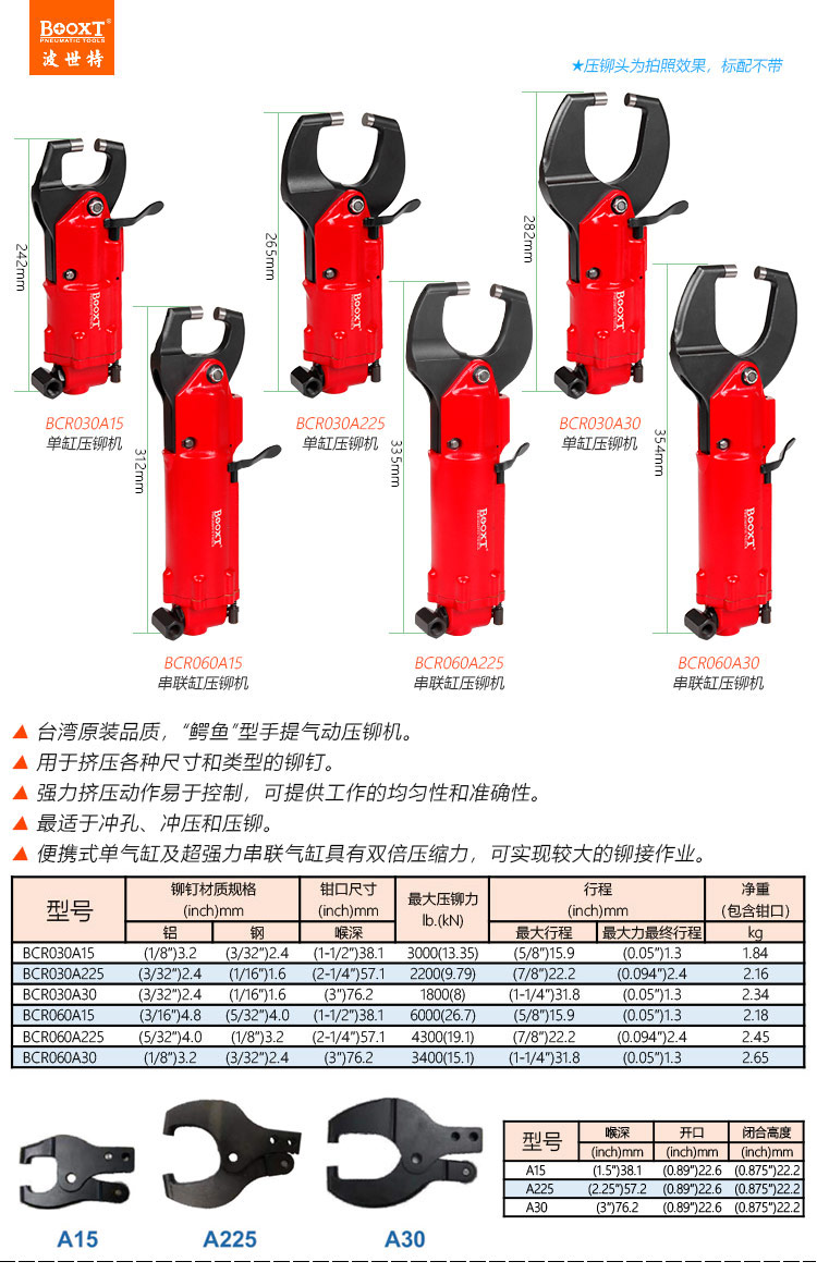 東莞市強(qiáng)勁五金工具有限公司提供臺灣BOOXT波世特品牌氣動(dòng)工具,鱷魚口氣動(dòng)壓鉚機(jī)BCR030A15廠家直銷,首件享特價(jià)。咨詢熱線:4008301980
