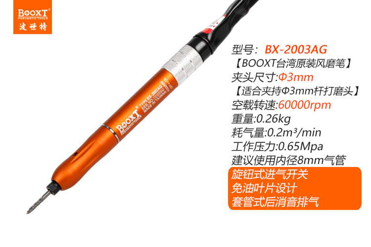 東莞市強(qiáng)勁五金工具有限公司提供臺(tái)灣BOOXT波世特品牌氣動(dòng)工具,工業(yè)級(jí)風(fēng)磨筆BX-2003AG廠家直銷(xiāo),首件享特價(jià)。咨詢(xún)熱線:4008301980