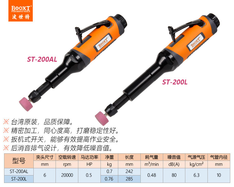 東莞市強勁五金工具有限公司提供臺灣BOOXT波世特品牌氣動工具,加長氣動風(fēng)磨機ST-200L廠家直銷,首件享特價。咨詢熱線:4008301980