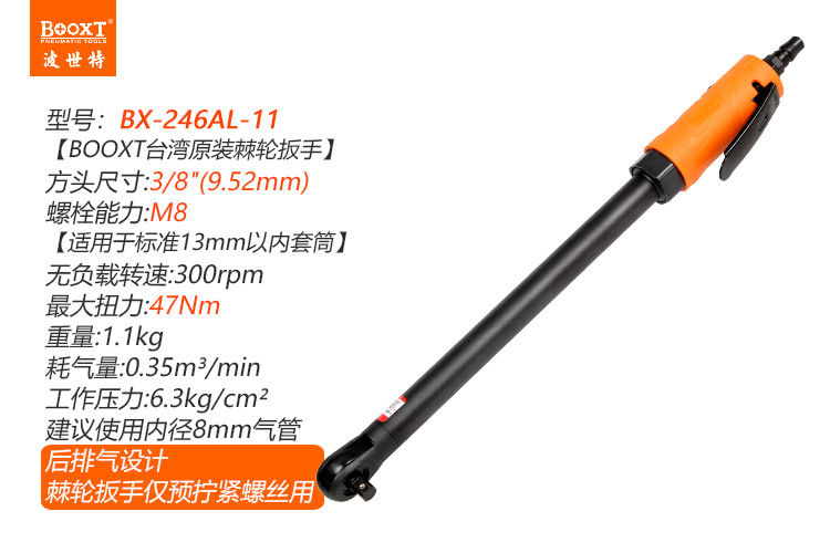 東莞市強勁五金工具有限公司提供臺灣BOOXT波世特品牌氣動工具,特加長氣動棘輪扳手BX-246AL-11廠家直銷,首件享特價。咨詢熱線:4008301980