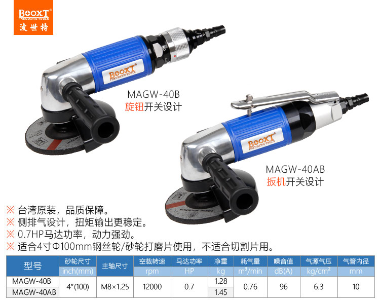 東莞市強勁五金工具有限公司提供臺灣BOOXT波世特品牌氣動工具,日系風動角磨機MAGW-40AB廠家直銷,首件享特價。咨詢熱線:4008301980
