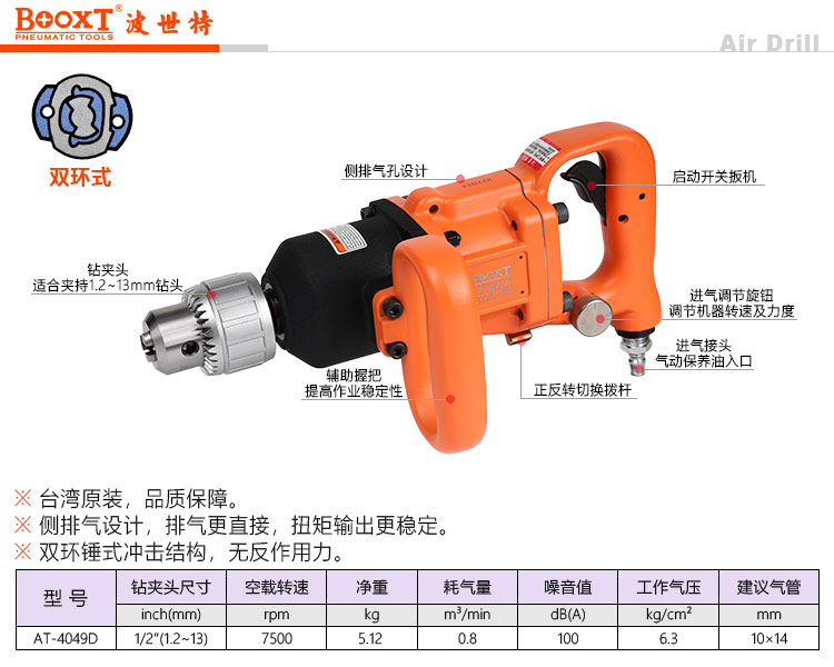 東莞市強勁五金工具有限公司提供臺灣BOOXT波世特品牌氣動工具,沖擊式氣動鉆AT-4049D廠家直銷,首件享特價。咨詢熱線:4008301980