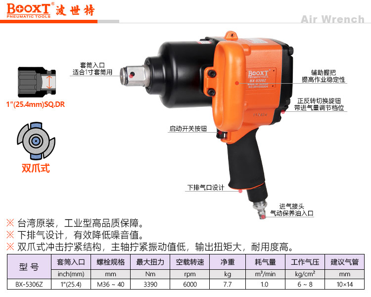 東莞市強(qiáng)勁五金工具有限公司提供臺(tái)灣BOOXT波世特品牌氣動(dòng)工具,雙爪式結(jié)構(gòu)氣動(dòng)扳手BX-5306Z廠家直銷,首件享特價(jià)。咨詢熱線:4008301980