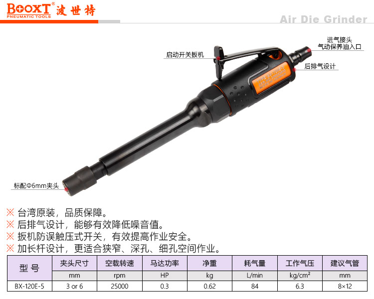 東莞市強(qiáng)勁五金工具有限公司提供臺(tái)灣BOOXT波世特品牌氣動(dòng)工具,加長(zhǎng)氣動(dòng)刻磨機(jī)BX-120E-5廠家直銷,首件享特價(jià)。咨詢熱線:4008301980