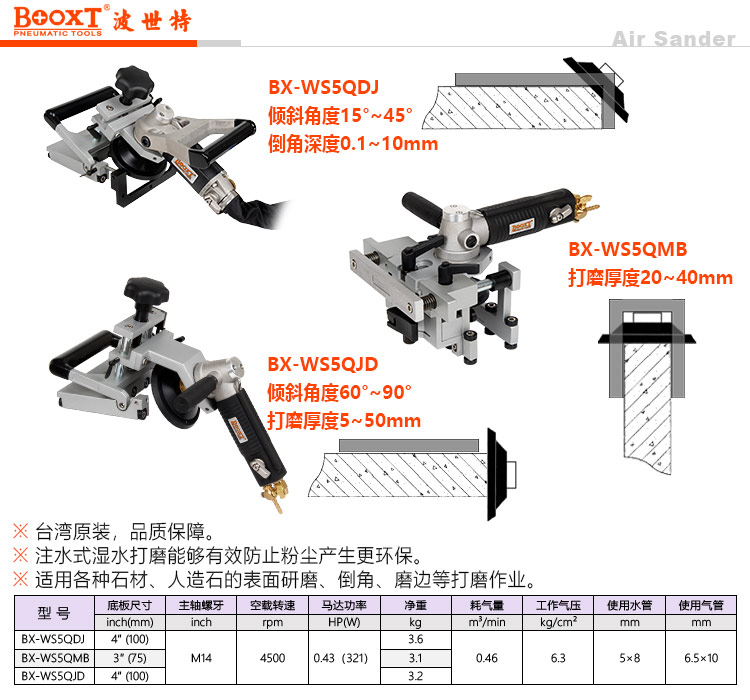 東莞市強(qiáng)勁五金工具有限公司提供臺(tái)灣BOOXT波世特品牌氣動(dòng)工具,氣動(dòng)石材正面磨邊機(jī)BX-WS5QMB廠家直銷,首件享特價(jià)。咨詢熱線:4008301980