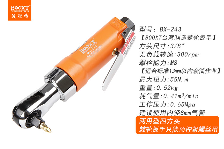 東莞市強勁五金工具有限公司提供臺灣BOOXT波世特品牌氣動工具,氣動棘輪板手BX-243廠家直銷,首件享特價。咨詢熱線:4008301980