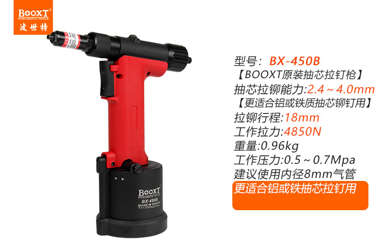 東莞市強(qiáng)勁五金工具有限公司提供臺(tái)灣BOOXT波世特品牌氣動(dòng)工具,風(fēng)動(dòng)拉釘槍BX-450B廠家直銷,首件享特價(jià)。咨詢熱線:4008301980