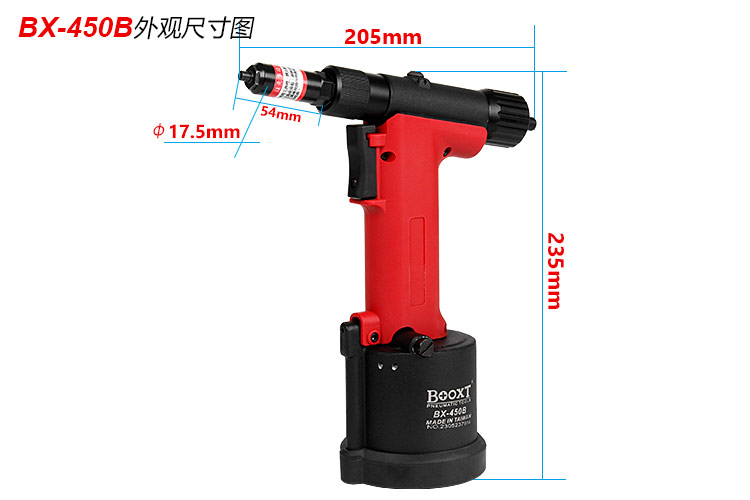 您當(dāng)前的位置: 首頁(yè) > BOOXT產(chǎn)品中心 > 氣動(dòng)鉚接工具 > 氣動(dòng)拉鉚槍 > 風(fēng)動(dòng)拉釘槍BX-450B