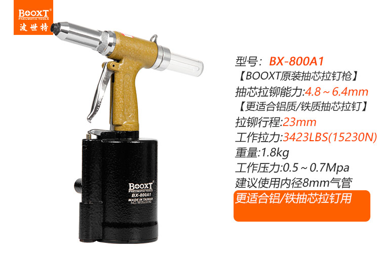 東莞市強勁五金工具有限公司提供臺灣BOOXT波世特品牌氣動工具,氣動拉鉚釘槍BX-800A1廠家直銷,首件享特價。咨詢熱線:4008301980