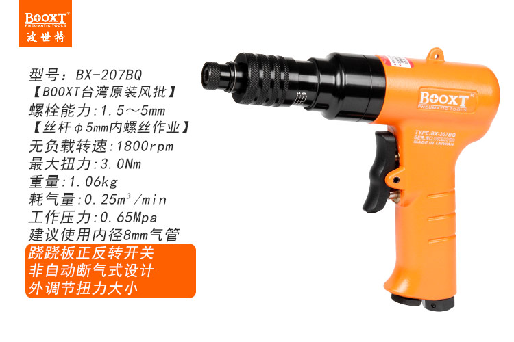 東莞強(qiáng)勁五金工具有限公司提供臺灣BOOXT波世特氣動工具,離合式風(fēng)批BX-207BQ廠家直銷,首件享特價。咨詢熱線:4008301980